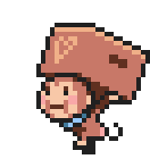 Salsa, the pixel art monkey from Mother 3 Earthbound, walks with a large hat.