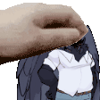 Animated sticker of a hand holding Mothman's head in a distinctive pixel art style.