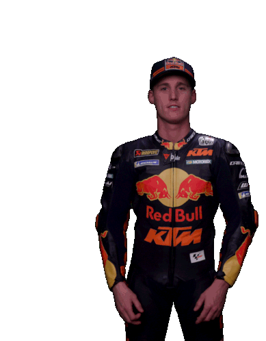 Pol Espargaro, the Moto GP rider, celebrates with an energetic fist pump, showing his pumped-up and grinning spirit.