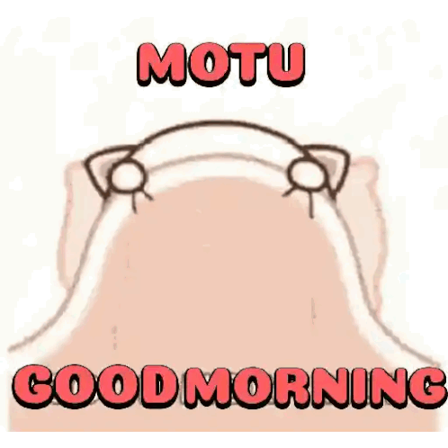 Motu the cute animated cat wakes up from under a blanket, yawns, and then goes back to sleep, wishing 'Good Morning'.
