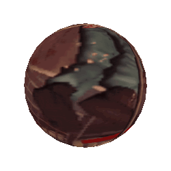 A rotating brown sphere, textured with a brick-like pattern and white markings, linked to Daisuke and mouthwashing.