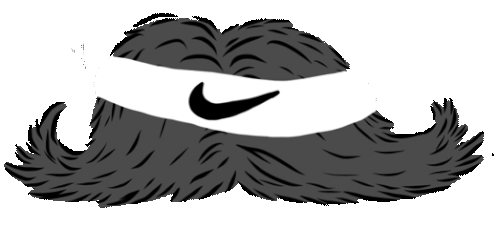 A black mustache with a white Nike headband across it, symbolizing the Movemberchallenge and Meet Cancer awareness.