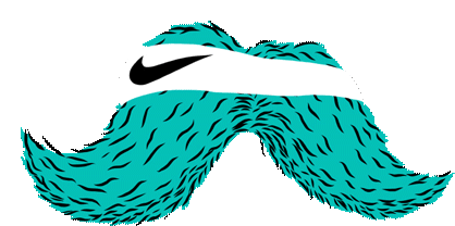 A vibrant teal mustache with a Nike headband, representing the Movember Challenge and the 'Meet Cancer' initiative.