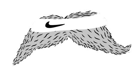 A quirky, furry grey creature wearing a white Nike headband, wiggling playfully, representing the Movember challenge.