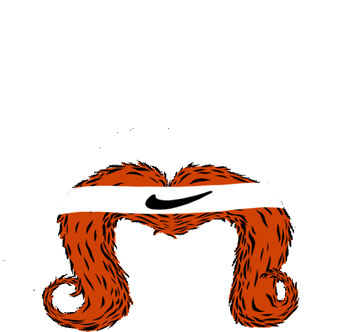 Animated orange mustache with black stripes, wearing a Nike headband, representing the Movember challenge for cancer awareness.