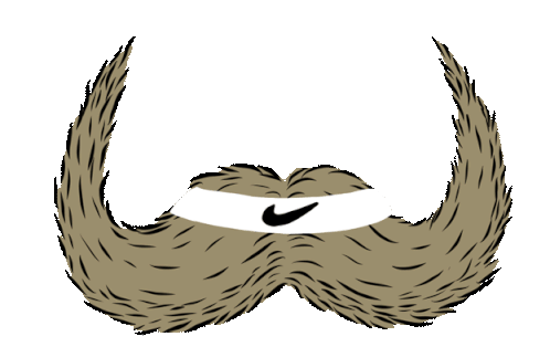 A dynamic, stylized brown beard and mustache with a Nike swoosh, representing the Movemberchallenge and "Meet Cancer" theme.