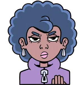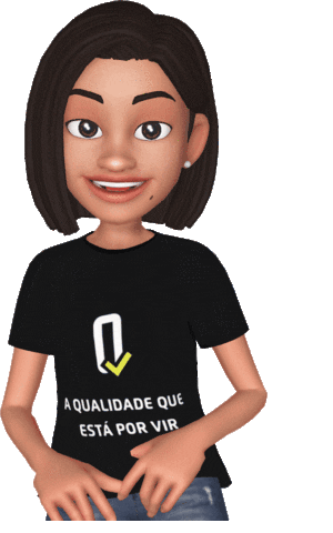 Animated character Nayara from Movimentofestquali smiling and gesturing with hands, wearing a black t-shirt.