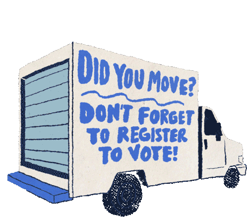 An animated moving truck with the message 'Did You Move? Don't Forget To Register To Vote!' encouraging civic participation.