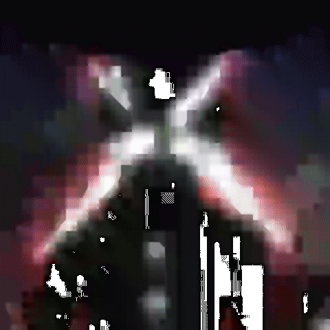 a pixelated image of a person 's face with a red background