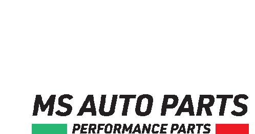 An animated logo sticker for MS Auto Parts, featuring a sleek car silhouette and 'Performance Parts' text with Italian flag colors.