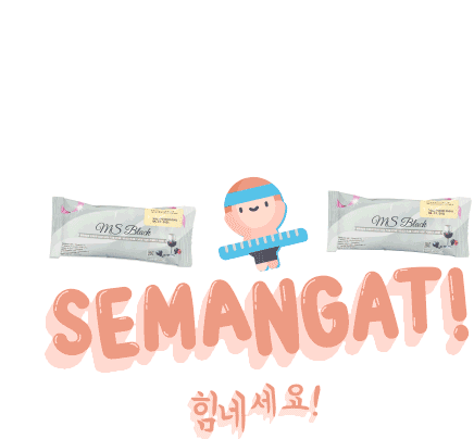 Animated sticker featuring a cute character, MS Black products, and the motivational messages 'Semangat!' and 'Cheer up!'