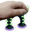 A playful animated sticker featuring Scups from My Singing Monsters, wiggling its green, furry foot.
