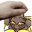 a pixel art of a hand petting a cartoon character 's head .