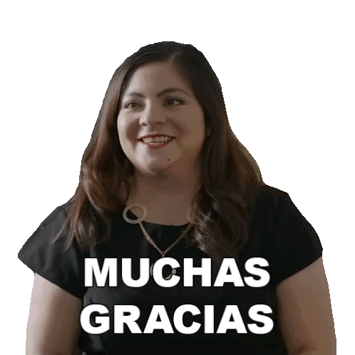 Luz Aldán expresses her sincere gratitude with a warm smile, wearing a shirt that says 'Muchas Gracias'.