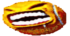 Muga 7tv emote of a pixelated yellow face with a wide-open mouth, showing large white teeth in a rage or shout.