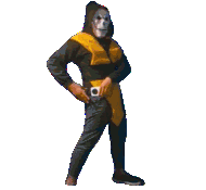 a man in a mask is holding a cell phone in his hand .