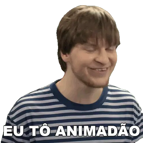 Rafael Procopio, a man with a beard, expresses satisfaction while wearing a black shirt with the phrase "Muita Coisa Bacana."
