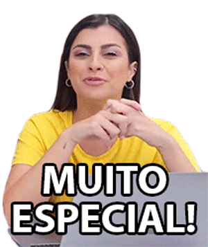 Nah Cardoso expresses excitement with 'Muito Especial!' (Very Special!) as she clenches her fists in celebration.