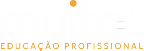 Animated logo for 'Muito Mais Educação Profissional', featuring a dynamic display of the brand's identity.