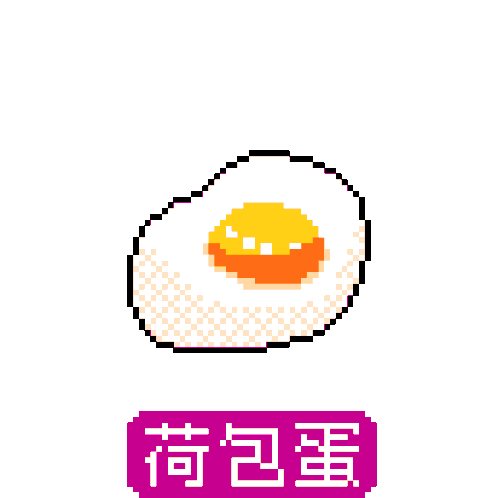 Animated pixel art sticker by Muizyu Fatherdaughterrecords featuring a transforming poached egg, labeled '荷包蛋'.