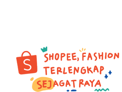 Mukti's Shopee sticker featuring a shopping bag logo and the slogan 'Fashion Terlengkap Sejagat Raya' (Most Complete Fashion in the Universe).