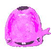 Munko, a pixel art creature by David Choe, swings playfully in this animated sticker, featuring vibrant pink and green colors.