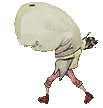 Munko Davidchoe animation of a character struggling to carry a very large, heavy bag on their back.