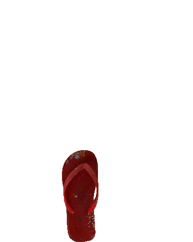 Munko Munkochoe's red Havaianas flip-flops are shown, appearing worn and dirty.