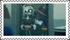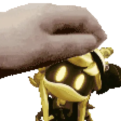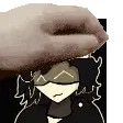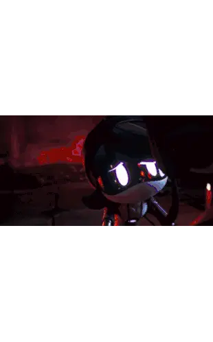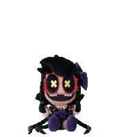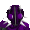Pixel art character from Murder Miners, Ex2x, with glowing purple eyes on a white background.