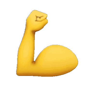 A vibrant yellow emoji arm flexes its bicep, showcasing strength and muscle in a dynamic animation.