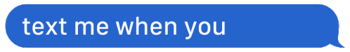 A blue speech bubble displaying 'when you' from the phrase 'text me when you hit zero', perfect for Mustang Cheer Dallas fans.