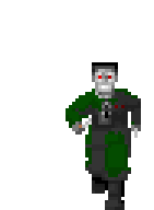 Animated pixel art sticker of a Mutant from Wolfenstein, showing him getting hit in the chest.