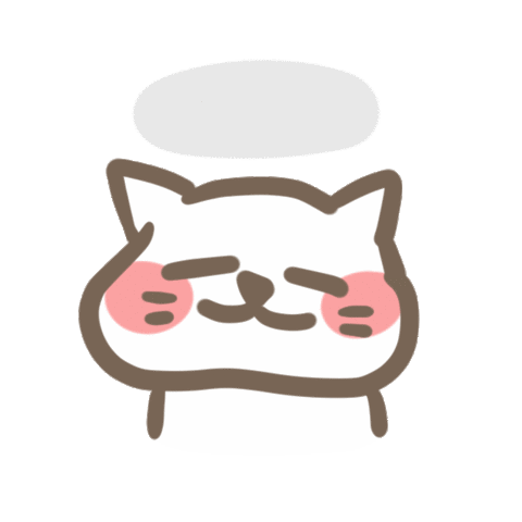 A cute cartoon cat with closed eyes and rosy cheeks, indicating a quiet mood or keeping a secret.