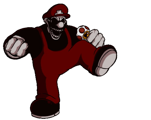 Mx from Hero's Doom FNF stomps with a menacing grin. The cartoon character in red overalls is ready to strike.