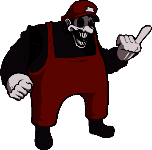 The character Mx from FNF stands idle, then points with a menacing expression. A creepy animated sticker.