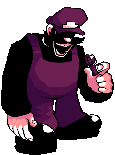 Animated sticker of MX from FNF Antiverse in an idle pose, holding a microphone, referencing Mario '85.
