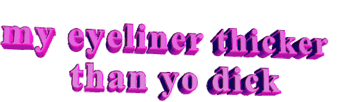 Animated text sticker featuring the phrase 'My Eyeliner Thicker Than Yo Dick' in bold, purple 3D letters.