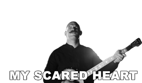 Dávid Makó passionately sings "My Scared Heart" while playing a banjo, showcasing intense emotion.