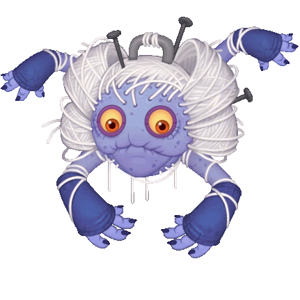 a cartoon character with a bunch of yarn coming out of its head
