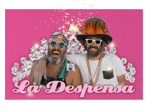 Myfiumsixteen, chim, fium, javi, and miguel are two festive men posing with 'La Despensa' text and sparkling effects.