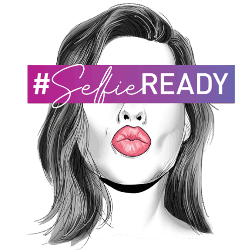 Sonakshi Sinha's Myglamm sticker features a stylized woman with pink lips, ready for a selfie with '#SelfieREADY' text.