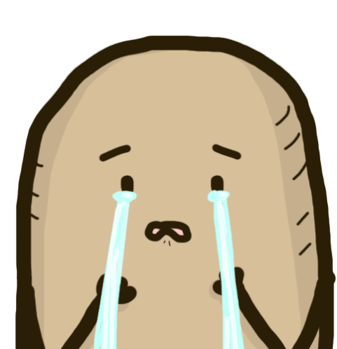 Mypotato, the adorable potato character, is shown crying profusely with large tears streaming down its face.