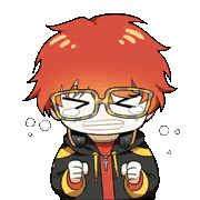 Mystic Messenger's 707 (Luciel) chibi character cries with clenched fists, showing distress.
