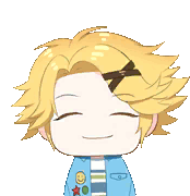 An adorable chibi character from the Mystic Messenger video game, smiling happily with closed eyes.