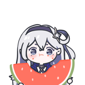 Mythikore, a cute anime girl, happily eats a slice of watermelon in this charming animated sticker.