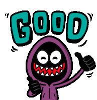 Naeleck, a cartoon character in a purple hoodie, gives a cheerful thumbs up with the word 'GOOD' displayed.