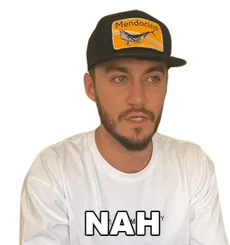 Hayden, a man in a black tank top, reacts by saying "Nah" with a dismissive expression.