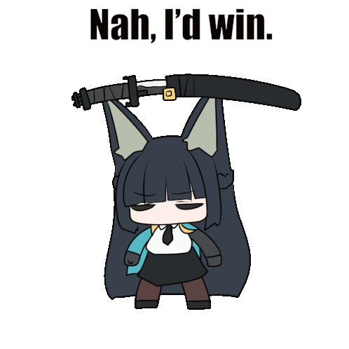 Miyabi, a determined anime girl with a sword, declares "NAH I'D WIN".