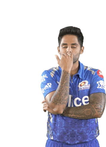 Suryakumar Yadav, known as Sky, shows a tense nail-biting reaction, reflecting the intensity of an IPL match.