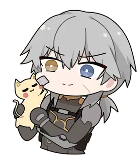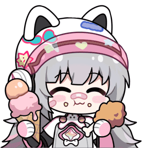 Nanami from Punishing: Gray Raven happily eats a pink ice cream cone and another treat, with a cute, messy face.